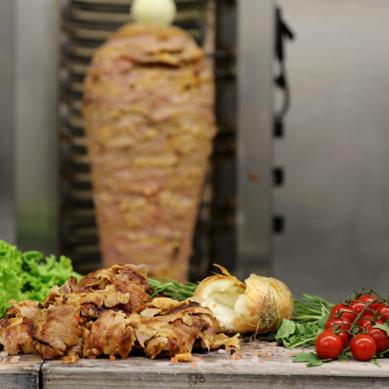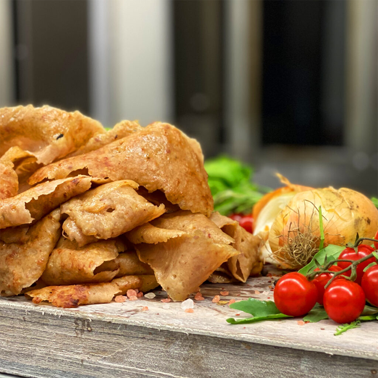 Unser Scheiben Döner mit feiner Geschmacksnote besteht zu 100 % aus hochwertigem Kalbfleisch. Das Fleisch wird mit modernen Maschinen in Scheiben geschnitten und anschließend mit ausgewählten Gewürzen und Saucen in speziellen Reifeschränken gelagert.
